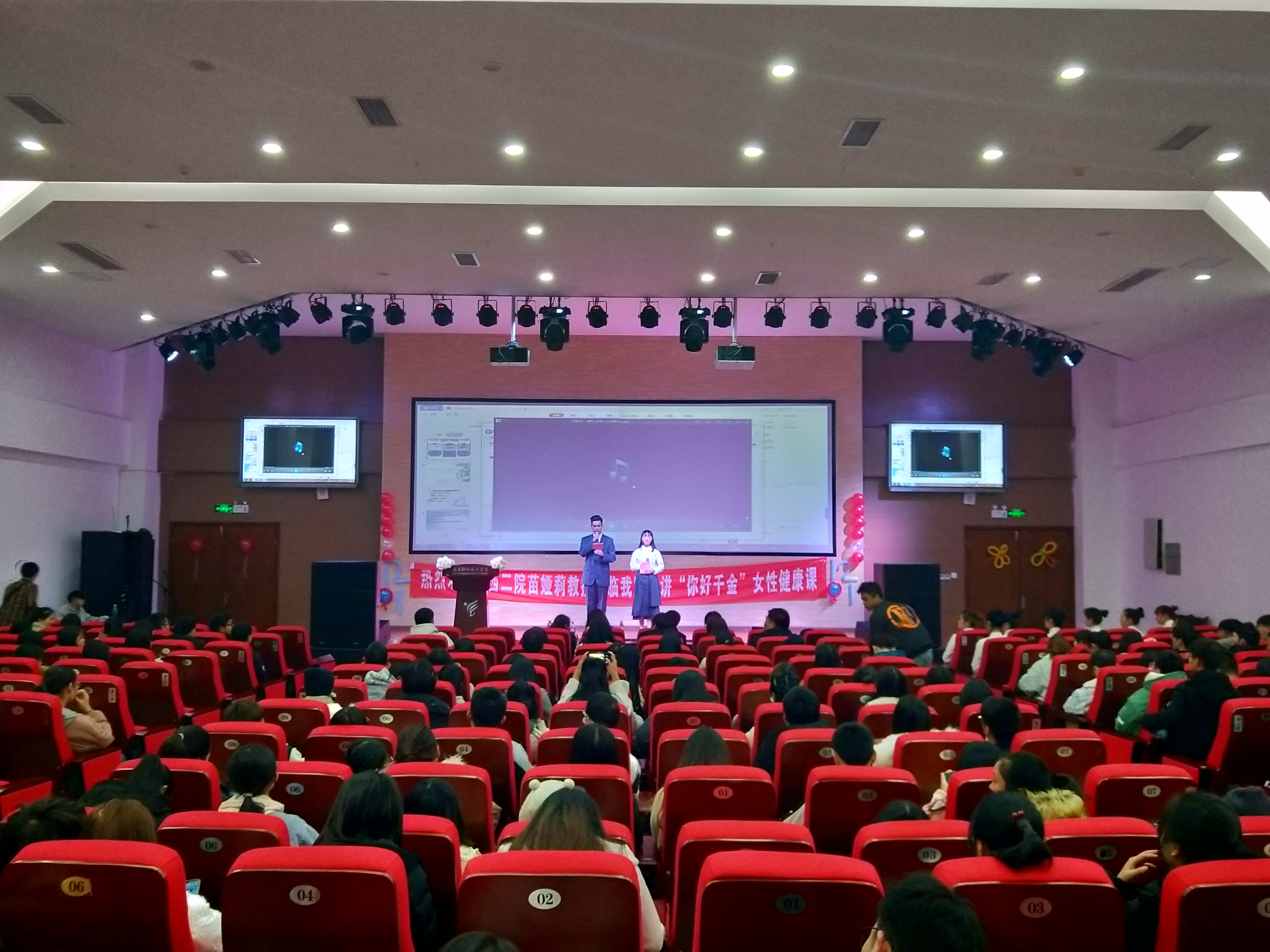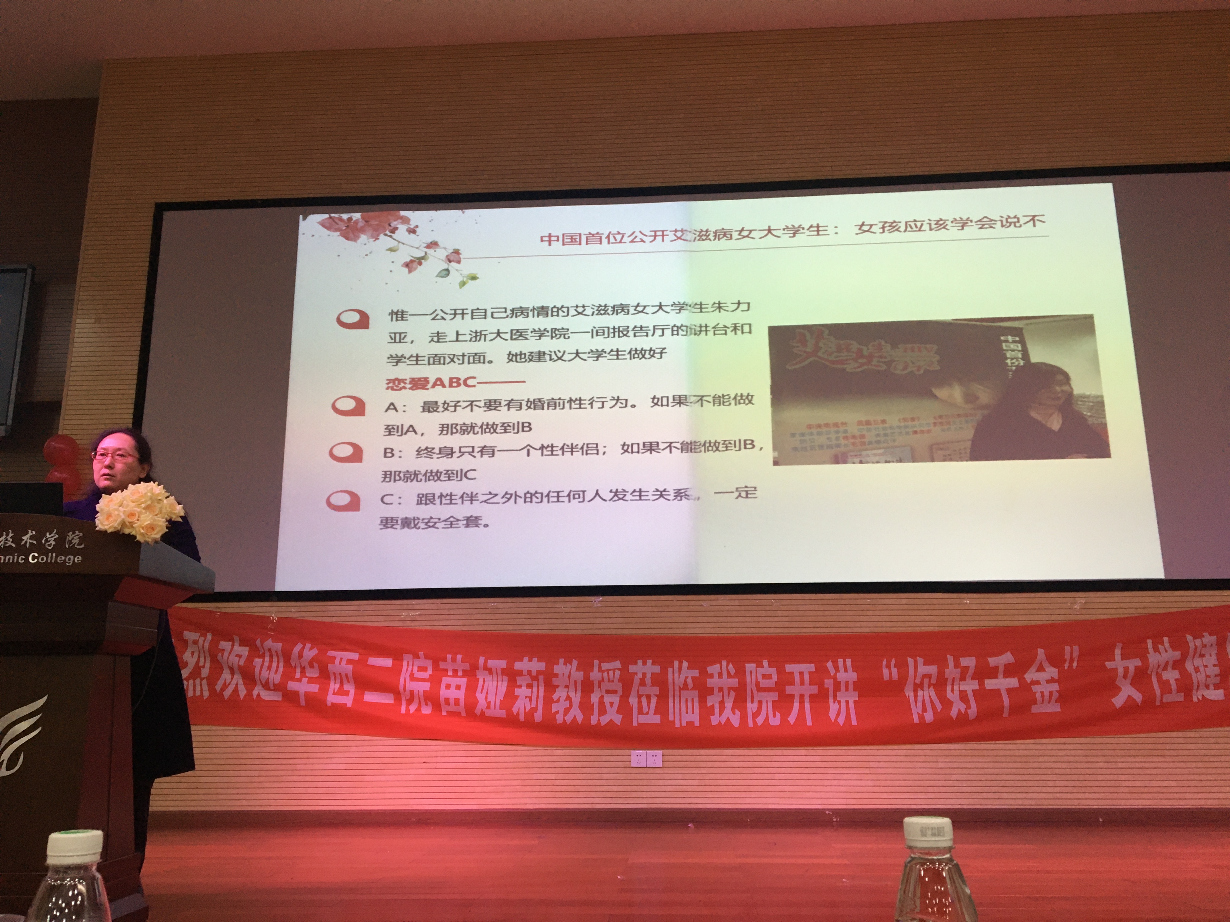 2019年12月1日是第32个世界艾滋病日,为有效普及艾滋病预防知识、提高全民艾滋病防治知识知晓率,营造老员工携手抗艾的氛围。由永利yl23411集团主办,基础医公司员工会承办的“青春无价,健康携手”两性健康知识讲座在青年路校区实验实训楼二楼多功能厅举行。此次讲座诚邀四川大学华西第二医院副主任医师苗娅莉教授担任讲师,永利yl23411集团团总支书记张晓惜老师、中国健康行教育协会“你好,千金——女生健康中国行”项目负责人阳建武老师、千金药业陈奎帆老师担任嘉宾,二百七十余名同学参与其中。