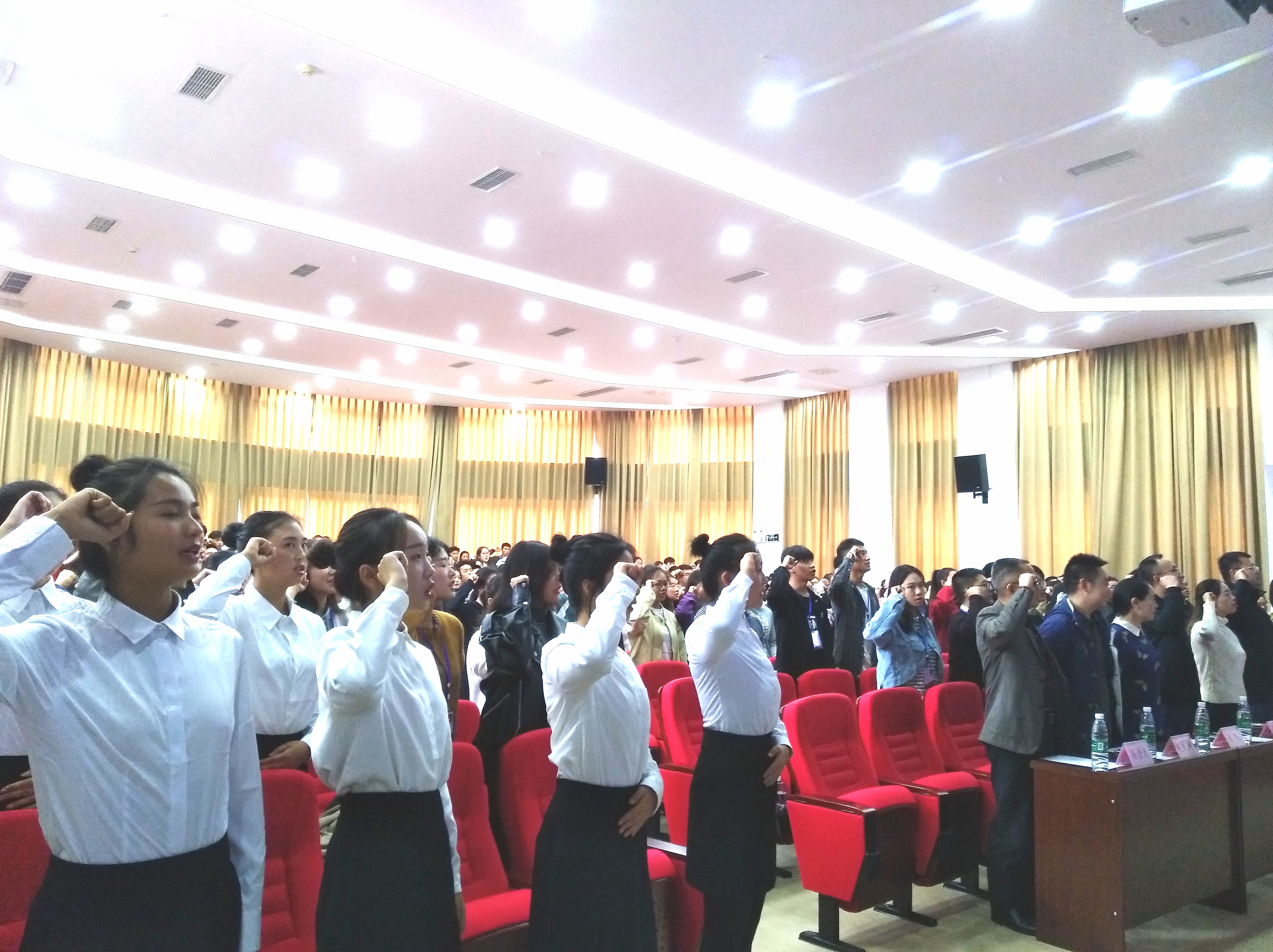 李千千同学代表18级新生表明要牢记医员工责任与使命,立志成为合格医员工的决心。随后在领誓人陈进同学的带领下,全体同学庄严宣誓:为除人类之病痛,为助健康之完美,为祖国医药卫生事业的发展奋斗终身。
