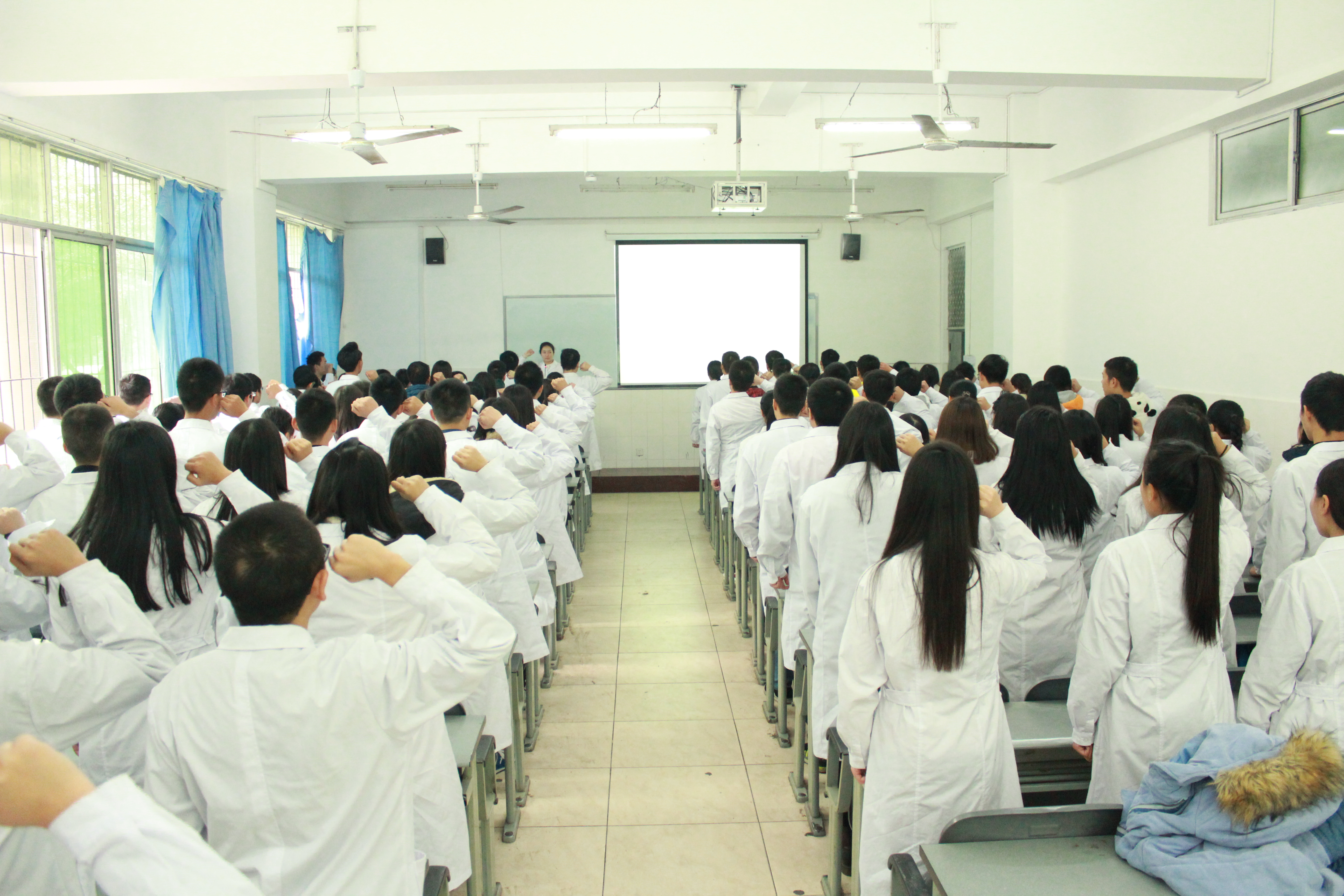 为培养医员工的责任感、使命感和自豪感,营造积极向上的学习氛围,医学系党支部、团总支和员工会于12月1日13:30在育才路校区实101举行医员工誓词宣誓活动,医学系15级各专业员工代表共150名参加。