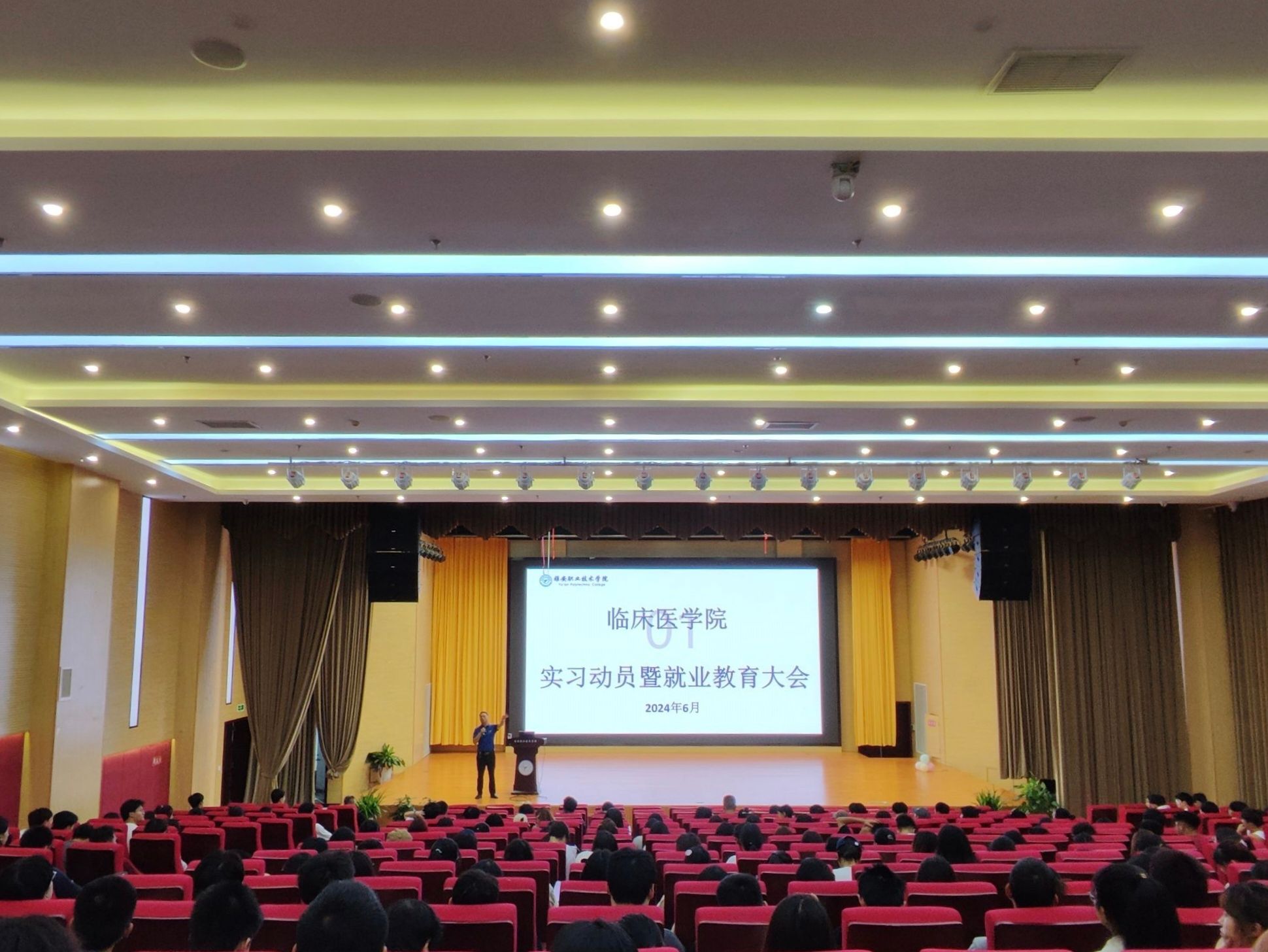 为进一步规范员工实习管理,切实提高医学人才培养质量,明晰实习方向与目标,助力员工有序融入医院,扎实推动实习工作顺利开展。6月26日,永利yl23411集团团总支于经开校区聚雅厅成功举行“永利yl23411集团实习动员暨就业教育大会”。永利yl23411集团官网入口教务处副处长李燕,永利yl23411集团副经理邓良超、杨志伟亲临现场,22级员工及相关工作人员共计320人参与此次大会。
