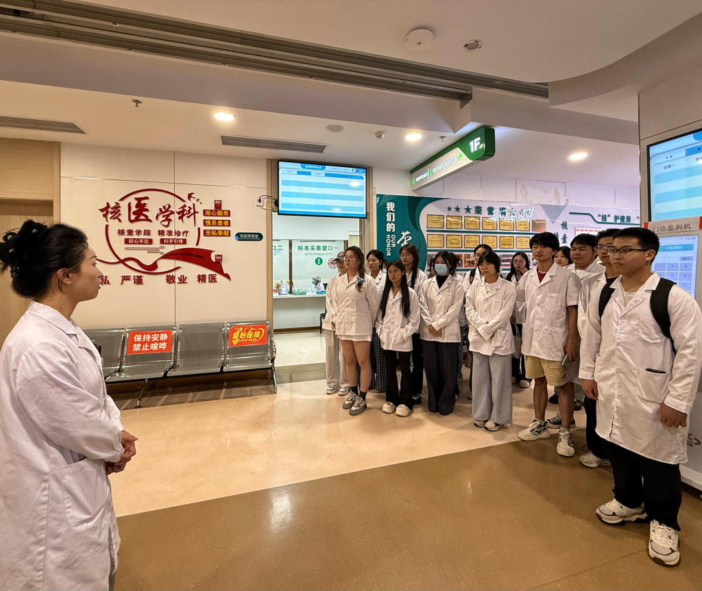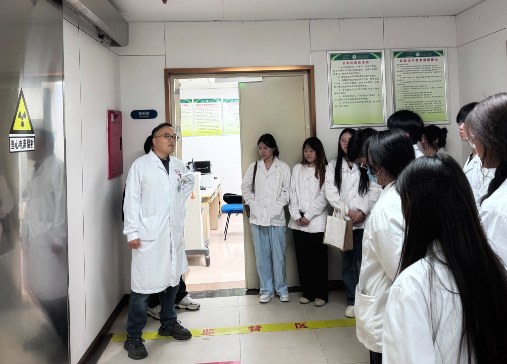 近日,在放射治疗技术专业校内专业负责人穆端老师的带领下,2023级同学前往四川大学华西医院雅安市人民医院临床实践,得到了医院核医学科杨福洲主任教学团队、肿瘤科李自康主任教学团队大力支持,同学们将所学的专业知识与实际临床工作相结合,了解核医学科、放射治疗中心各类设备的操作,了解肿瘤放射治疗的流程和技术,提升专业操作技能,增强对专业的认知和理解,为即将到来的临床实习和今后的职业发展夯实基础。同时,这也有助于加强永利yl23411集团官网入口与四川大学华西医院雅安市人民医院的合作与交流,进一步推进院校联合办学,深化医教融合,共同提高医学人才的培养质量。